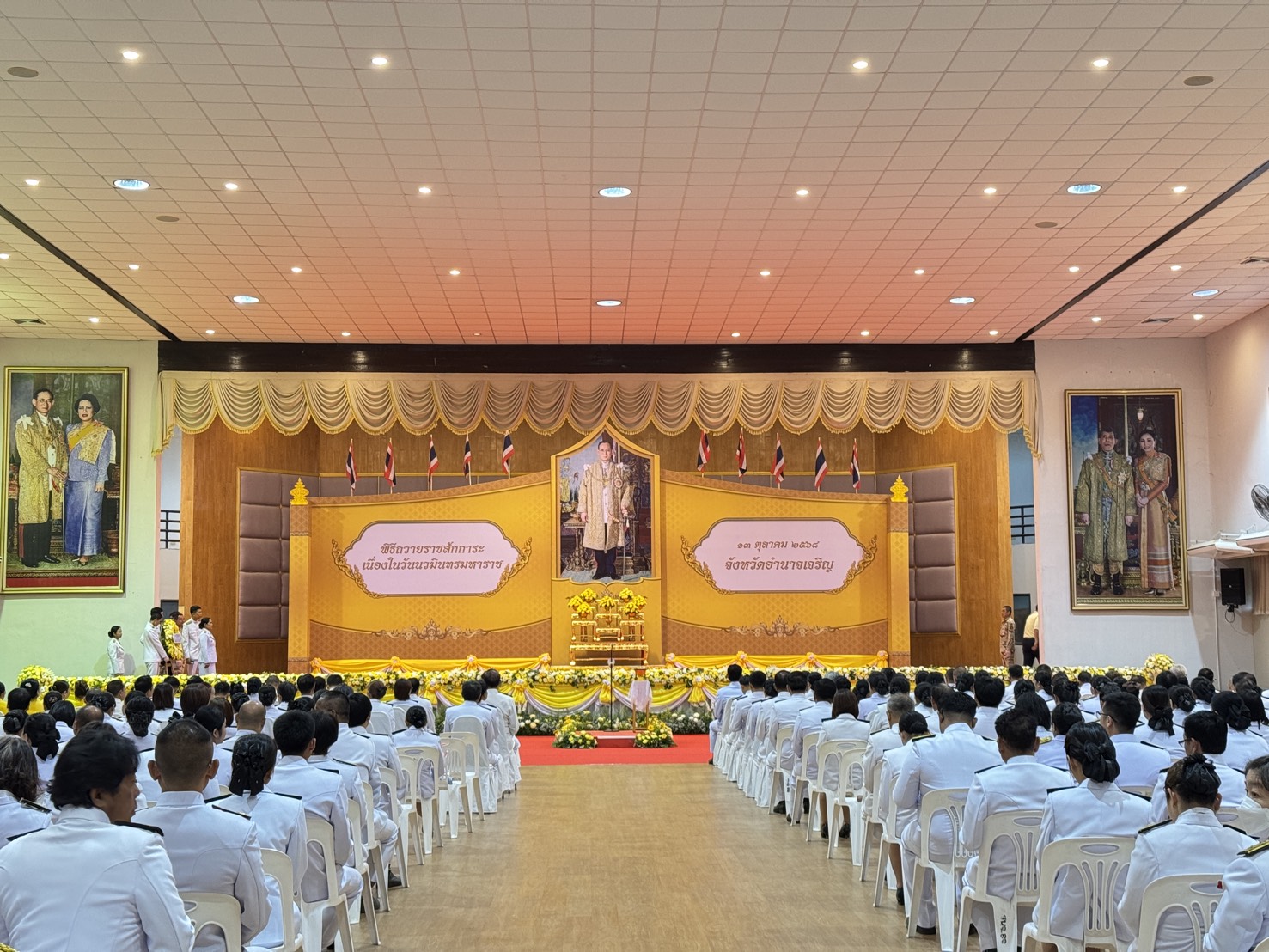 ผู้อำนวยการสำนักงานส่งเสริมการเรียนรู้ประจำจังหวัดอำนาจเจริญ มอบหมายให้ นายศุภฤกษ์ วงศ์บุตร รองผู้อำนวยการสำนักงาน สกร. ประจำจังหวัดอำนาจเจริญ พร้อมด้วยบุคลากรในสังกัด เข้าร่วมพิธีสวดพระพุทธมนต์และพิธีทำบุญตักบาตรถวายพระราชกุศล ณ พุทธอุทยานพระมิ่งมงคล อำเภอเมืองอำนาจเจริญ จังหวัดอำนาจเจริญ และพิธีวางพวงมาลาและถวายราชสดุดี ณ หอประชุมพญานาครินทร์ ศาลากลางจังหวัดอำนาจเจริญ เนื่องในวันนวมินทรมหาราช โดยมีนายอนุรัตน์ ธรรมประจำจิต ผู้ว่าราชการจังหวัดอำนาจเจริญ เป็นประธานในพิธีฯ