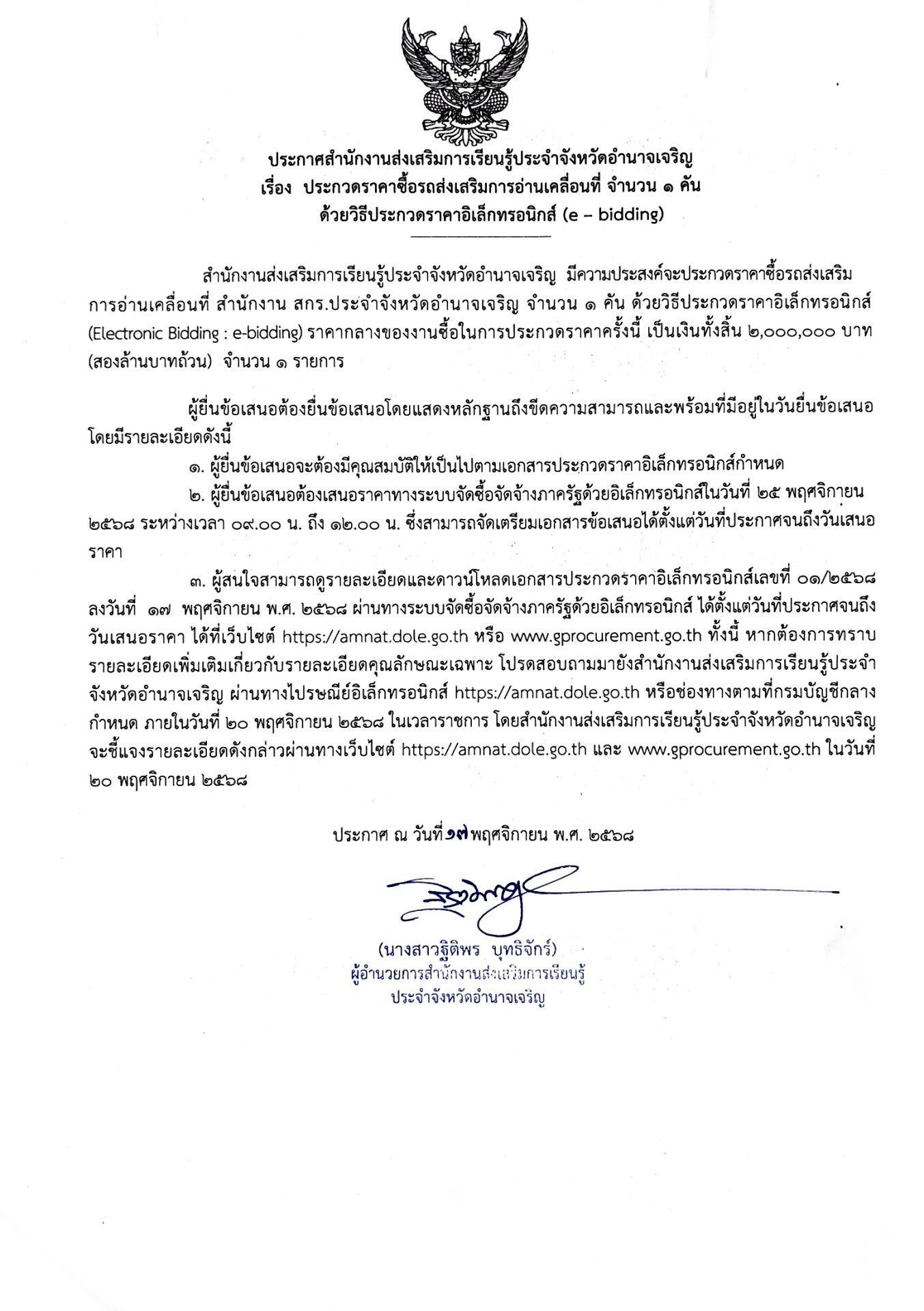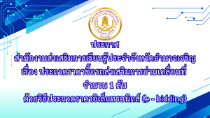 เรื่อง ประกวดราคาซื้อรถส่งเสริมการอ่านเคลื่อนที่ ด้วยวิธีประกวดราคาอิเล็กทรอนิกส์ (e – bidding) 18 พฤศจิกายน 202518 พฤศจิกายน 2025 pornchai ประกาศสำนักงานส่งเสริมการเรียนรู้ประจำจังหวัดอำนาจเจริญ เรื่อง ประกวดราคาซื้อรถส่งเสริมการอ่านเคลื่อนที่ จำนวน 1 คัน ด้วยวิธีประกวดราคาอิเล็กทรอนิกส์ (e – bidding) อ่านรายละเอียดเพิ่มเติม