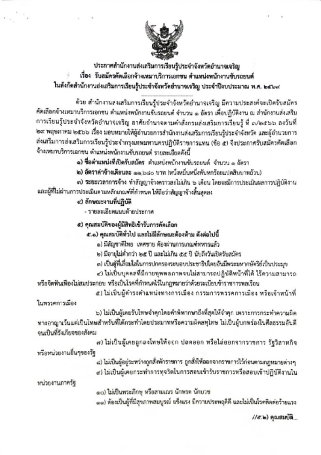 ประกาศสำนักงานส่งเสริมการเรียนรู้ประจำจังหวัดอำนาจเจริญ