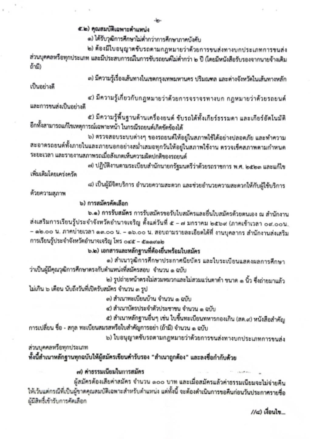 เรื่อง รับสมัครคัดเลือกจ้างเหมาบริการเอกชน ตำแหน่งพนักงานขับรถยนต์