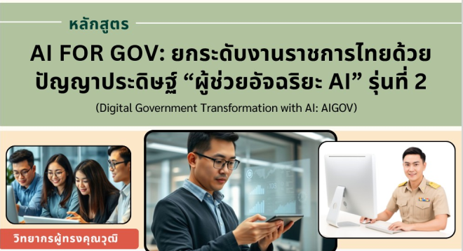 ขอเชิญบุคลากรเข้าร่วทการฝึกอบรม หลักสูตรด้านปัญญาประดิษฐ์ (AI) 26 ธันวาคม 202526 ธันวาคม 2025 pornchai ขอเชิญบุคลากรเข้าร่วทการฝึกอบรม หลักสูตรด้านปัญญาประดิษฐ์ (AI) หลักสูตร AI for Gov: ยกระดับงานราชการไทย ด้วยปัญญาประดิษฐ์ “ผู้ช่วยอัจฉริยะ AI” รุ่นที่ 2 (Digital Government Transformation with AI: AIGOV) แผ่นพับแนะนำหลักสูตร แบบฟอร์มลงทะเบียน กำหนดการ