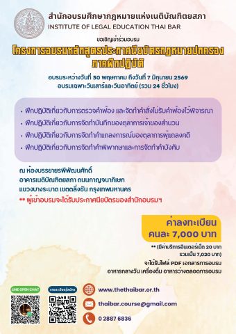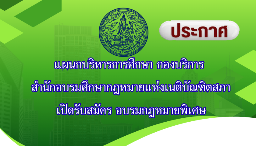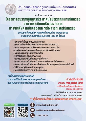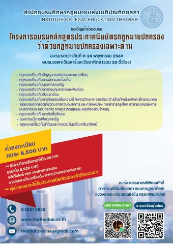 แผนกบริหารการศึกษา กองบริการ สำนักอบรมศึกษากฎหมายแห่งเนติบัณฑิตสภา เปิดรับสมัคร อบรมกฎหมายพิเศษ 5 กุมภาพันธ์ 20265 กุมภาพันธ์ 2026 pornchai
