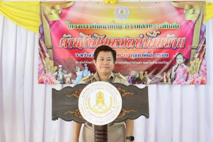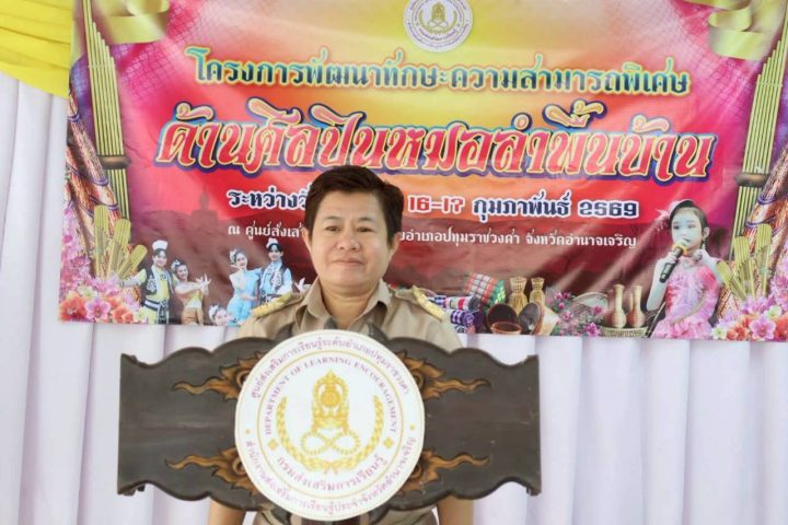 นางสาวฐิติพร บุทธิจักร์ ผู้อำนวยการสำนักงานส่งเสริมการเรียนรู้ประจำจังหวัดอำนาจเจริญ เป็นประธานในพิธีเปิดโครงการพัฒนาทักษะความสามารถพิเศษด้านศิลปินหมอลำพื้นบ้าน สกร.ระดับอำเภอปทุมราชวงศา โดยมี นางแสงเพ็ญ โล่ห์คำ ผู้อำนวยการ สกร.ระดับอำเภอปทุมราชวงศา เป็นผู้กล่าวรายงานชี้แจงวัตถุประสงค์การจัดโครงการ ณ ห้องประชุม สกร.ระดับอำเภอปทุมราชวงศา เพื่อส่งเสริมให้ผู้เรียนเกิดการเรียนรู้ศิลปะการแสดงหมอลำ ภูมิปัญญาท้องถิ่นของอำเภอปทุมราชวงศา จังหวัดอำนาจเจริญ