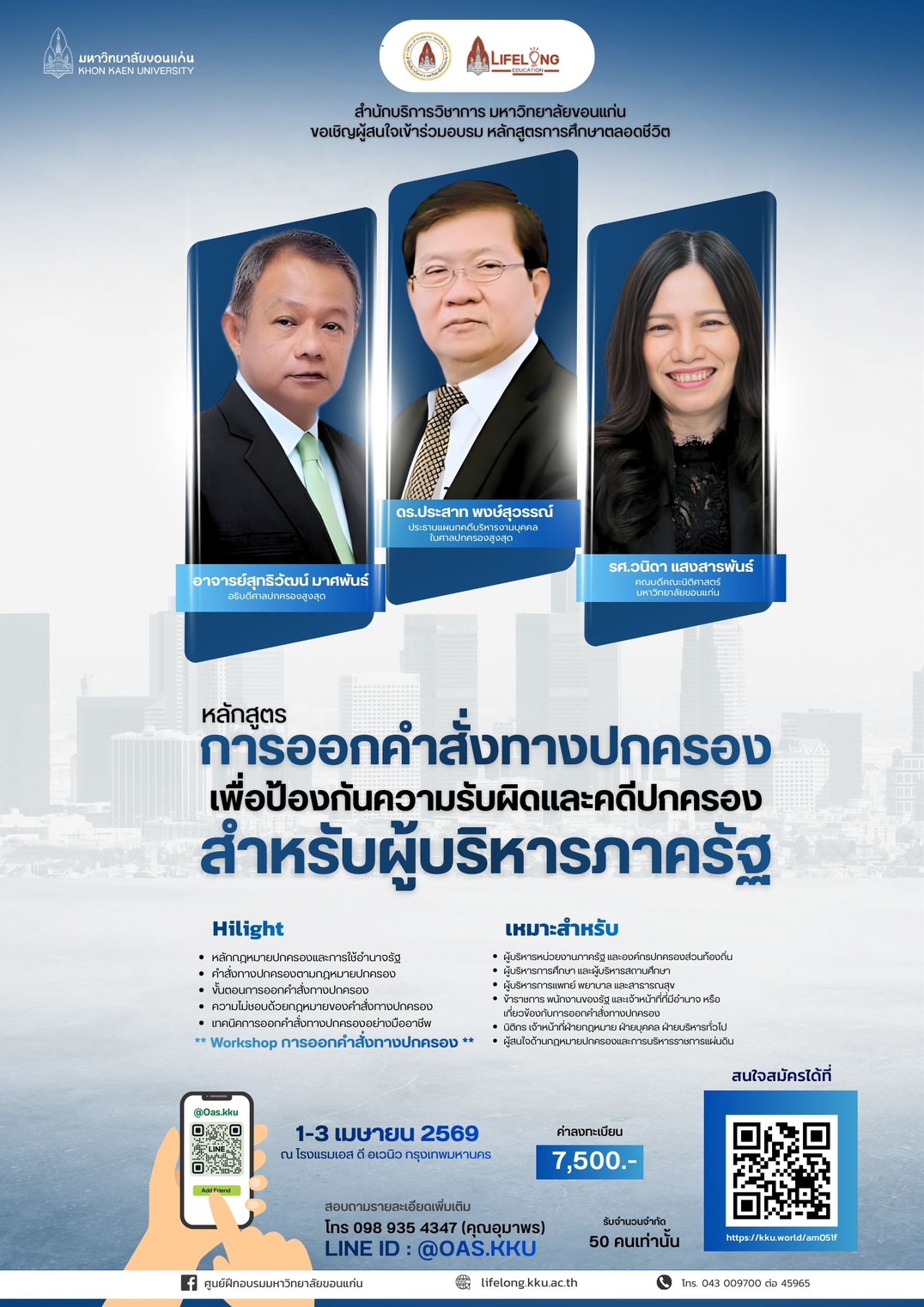 ผู้ประสานงานหลักสูตร คุณอุมาพร ปาลสาร โทร. 0989354347 Line ID. @OAS.KKU