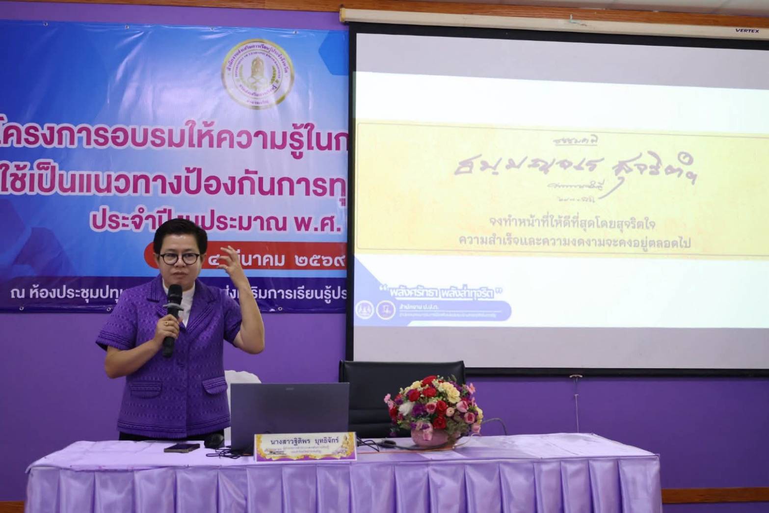 นางสาวฐิติพร บุทธิจักร์ ผู้อำนวยการสำนักงาน สกร.ประจำจังหวัดอำนาจเจริญ เป็นประธานในพิธีเปิดโครงการอบรมให้ความรู้ในการปฏิบัติงานเพื่อใช้เป็นแนวทางป้องกันการทุจริตในหน่วยงาน ประจำปีงบประมาณ พ.ศ.2569 โดยมี เจ้าหน้าที่จากสำนักงานป้องกันและปราบปรามการทุจริตในภาครัฐ เขต 3 เป็นวิทยากรให้ความรู้ ในครั้งนี้ ณ ห้องประชุมปทุมราช สำนักงาน สกร.ประจำจังหวัดอำนาจเจริญ โดยมีวัตถุประสงค์เพื่อส่งเสริมให้ผู้บริหารสถานศึกษา ครู และบุคลากรในสังกัด มีจิตสำนึกในเรื่องความซื่อสัตย์สุจริต มีคุณธรรมในการดำเนินชีวิตและปฏิบัติงาน