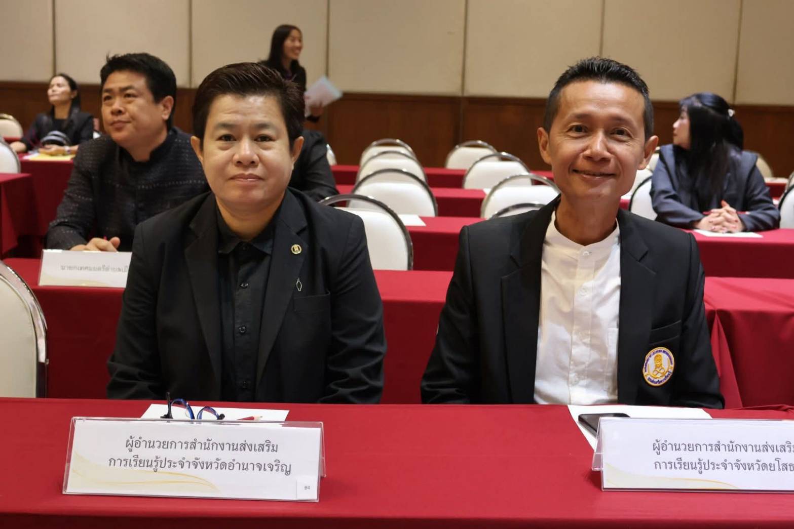 นางสาวฐิติพร บุทธิจักร์ ผู้อำนวยการสำนักงานส่งเสริมการเรียนรู้ประจำจังหวัดอำนาจเจริญ เข้าร่วมการประชุมและพิธีลงนามบันทึกข้อตกลงความร่วมมือขับเคลื่อนโครงการพัฒนาศักยภาพผู้สูงอายุ คนพิการ/ผู้ดูแลคนพิการ ผู้ด้อยโอกาส (เด็กหลุดจากระบบการศึกษา) เพื่อพัฒนาคุณภาพชีวิตและสร้างอาชีพ ประจำปีงบประมาณ พ.ศ. 2569 (กิจกรรมย่อยที่ 1.4) โดยมี ว่าที่ร้อยตรีกรกฎ ประเสริฐวงษ์ รองผู้ว่าราชการจังหวัดอุบลราชธานี เป็นประธานพิธี พร้อมด้วย รองผู้ว่าราชการจังหวัด ทั้ง 4 จังหวัด ได้แก่ จังหวัดยโสธร ศรีสะเกษ อำนาจเจริญ หัวหน้าส่วนราชการ หน่วยงานที่เกี่ยวข้องเข้าร่วมประชุม ฯ ทั้งนี้ ในการประชุมดังกล่าว ได้มีการเสวมาเรื่อง “การขับเคลื่อนการพัฒนาศักยภาพผู้สูงวัย คนพิการและเด็กด้อยโอกาสแบบบูรณาการ” พร้อมกล่าวเปิดและปาฐกถาพิเศษ เรื่อง “ความสำคัญของการบูรณาการ กับการพัฒนากลุ่มเปราะบางในระดับพื้นที่” และ พิธีลงนามบันทึกข้อตกลงความร่วมมือ (MOU) ณ โรงแรมสุนีย์แกรนด์ แอนด์ คอนเวนชั่นเซ็นเตอร์ จังหวัดอุบลราชธานี