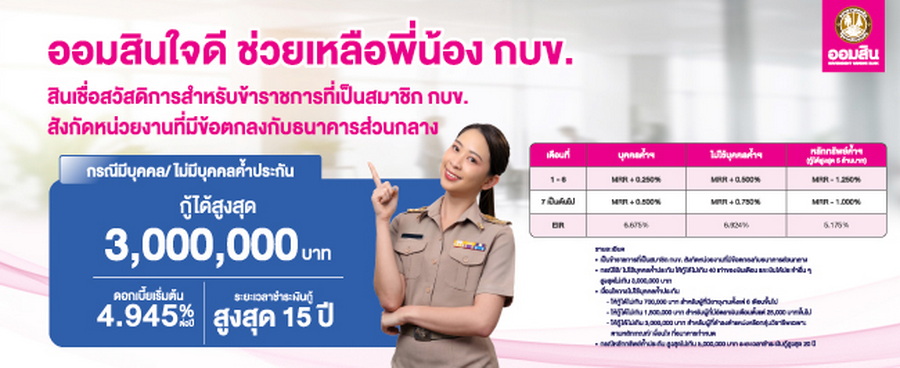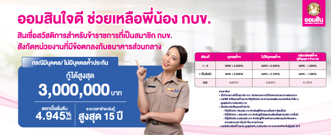 โปรโมชันสินเชื่อสวัสดิการ (MOU) สำหรับข้าราชการที่เป็นสมาชิก กบข.