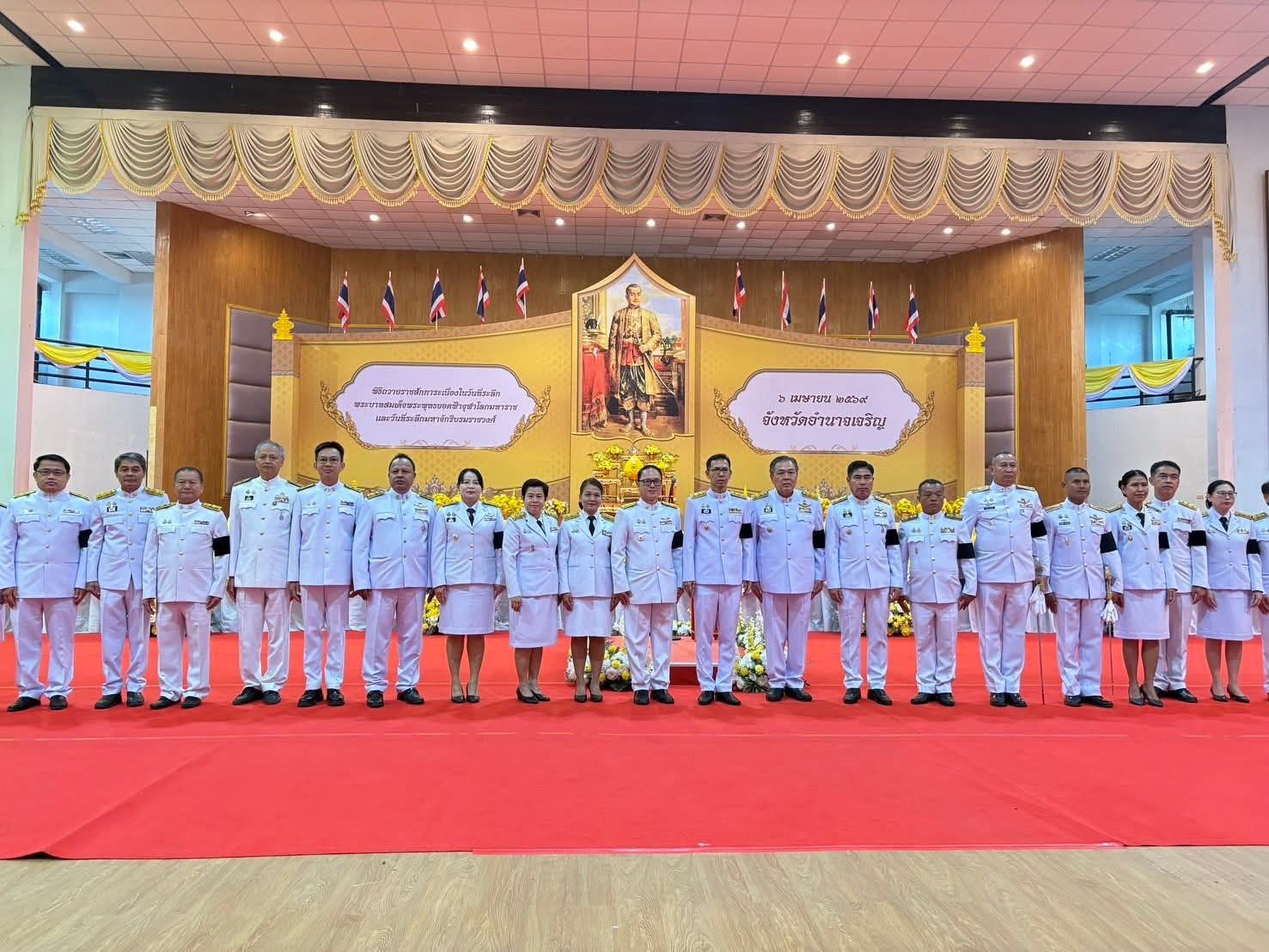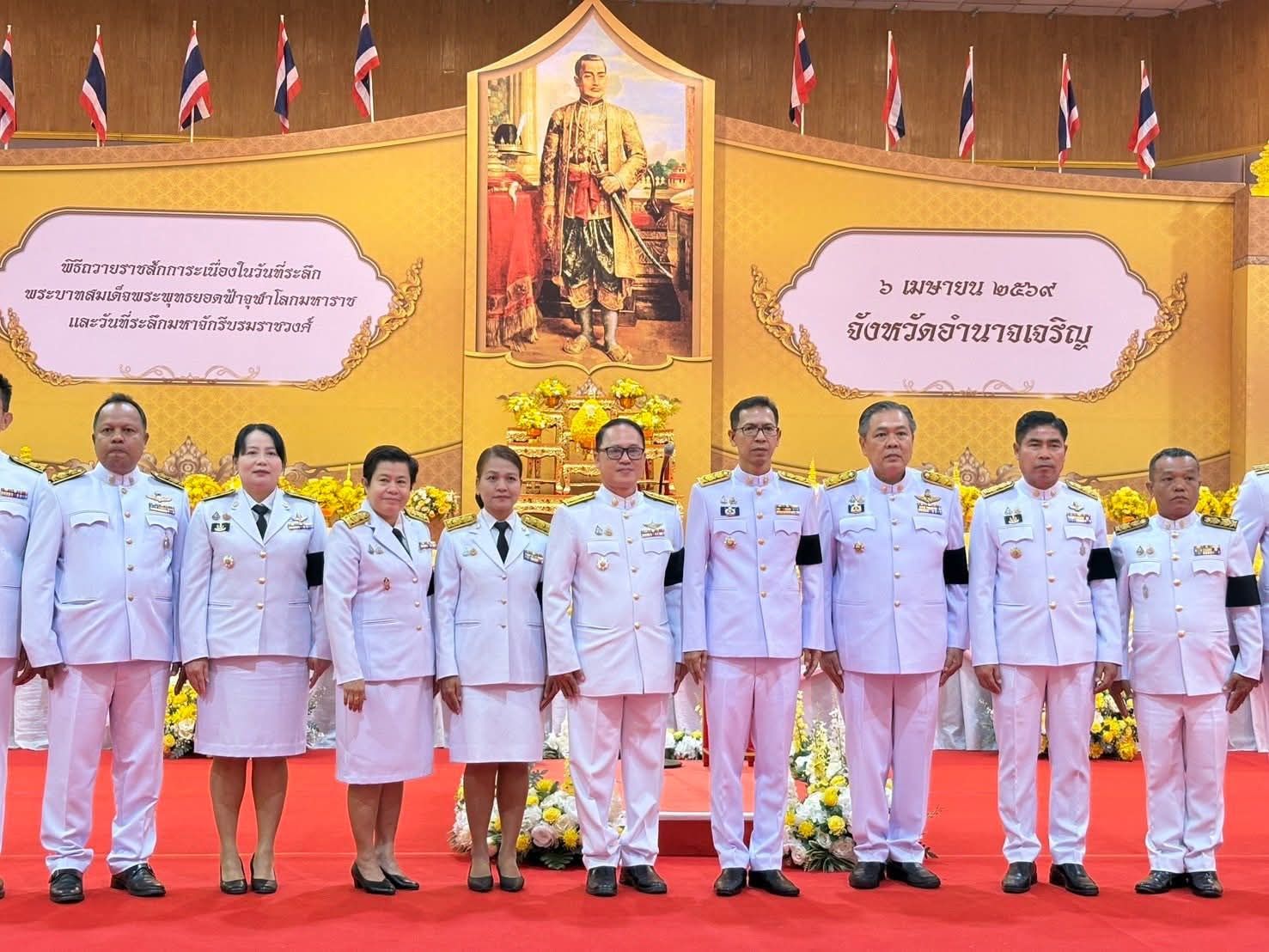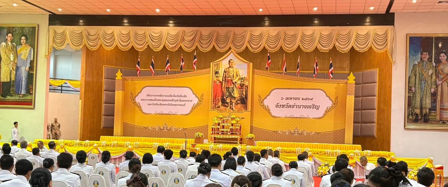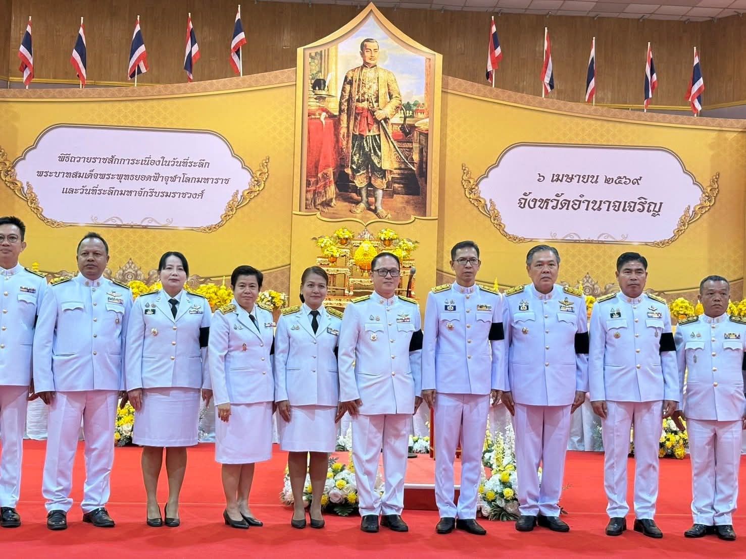 เข้าร่วมงานรัฐพิธีเนื่องในวันที่ระลึก “พระบาทสมเด็จพระพุทธยอดฟ้าจุฬาโลกมหาราช และวันที่ระลึกมหาจักรีบรมราชวงศ์” โดยมี นายเสนีย์ ส้มเขียวหวาน ผู้ว่าราชการจังหวัดอำนาจเจริญ เป็นประธานในพิธี ณ หอประชุมพญานาครินทร์ ศาลากลางจังหวัดอำนาจเจริญ